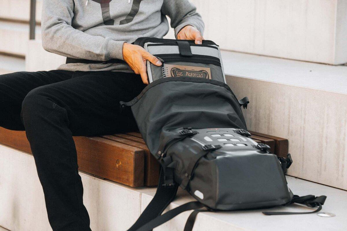 SW-Motech prinaša na trg nov visokokakovosten motoristični nahrbtnik Daily WP, ki je kos vsem izzivom vsakodnevnega motociklizma. Njegove praktične lastnosti zagotavljajo varen, udoben in suh prevoz vaših stvari. Popoln za prevoz na delo ali dolga potovanja ob koncu tedna. Vodotesen glavni predal z zapiranjem na rolo ponuja 22 litrov prostora za shranjevanje, zahvaljujoč robustnemu materialu TPU pa ostanejo vaše stvari zaščitene tudi v močnem dežju. 15-palčni prenosni računalnik in tablični računalnik lahko preprosto shranite v odstranljiv predal za prenosni računalnik. Prostoren sprednji žep z integriranim nastavkom za ključe ponuja veliko prostora za manjše predmete. Oblazinjeni nosilni trakovi so nastavljivi po dolžini, odstranljiv bočni pas in ergonomsko oblikovana hrbtna podloga pa zagotavljata visoko stopnjo udobja.